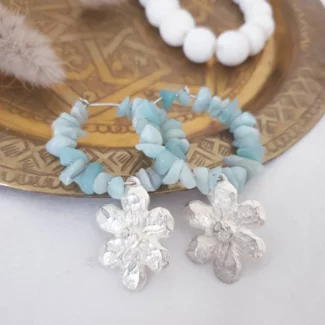Archive boucles d’oreilles Fleur argent et pierre calcédoine