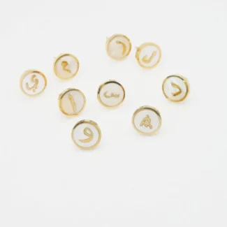 Boucle d’oreille vendue à l’unité. Earring one piece letter in arabic alphabet in stainless steel with a gold arabic letter on shell .