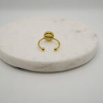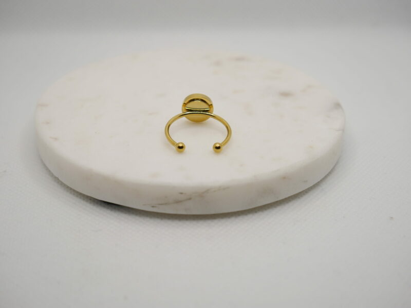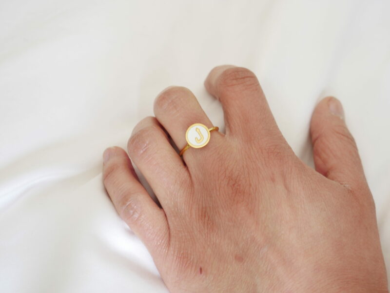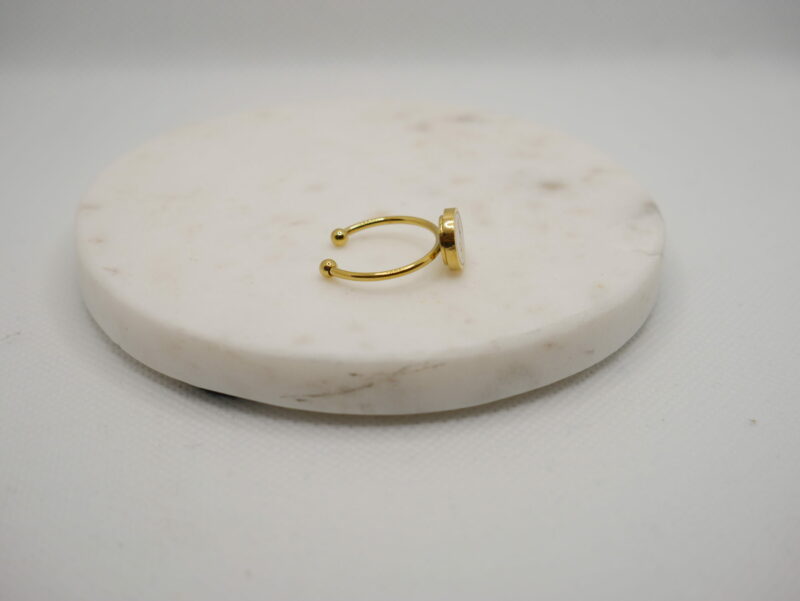 Bague réglable avec une lettre arabe à personnaliser en acier inoxydable couleur or et nacre.